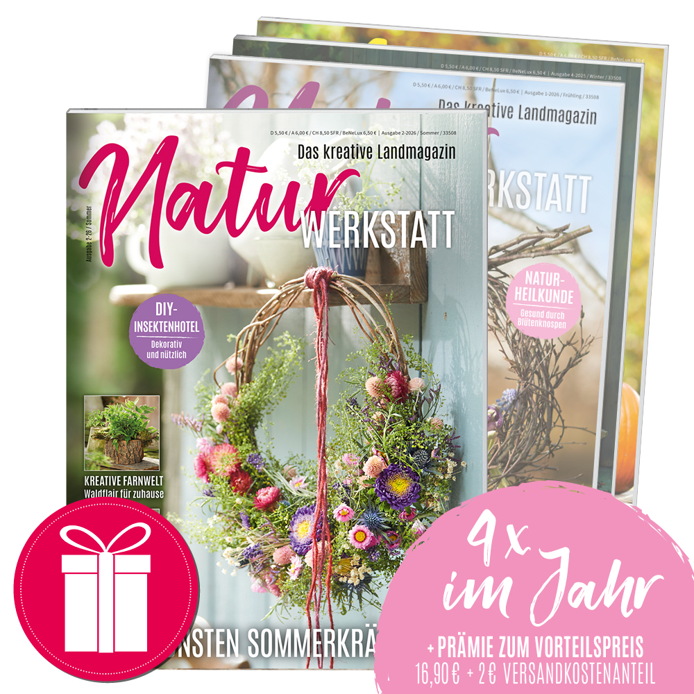 Oder macht einer lieben Person eine Freude und verschenkt NaturWERKSTATT im Abo! Einfach bei uns im Webshop bestellen und den Geschenkgutschein bequem zuhause selbst ausdrucken.