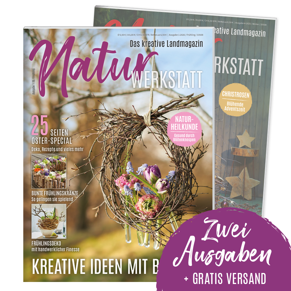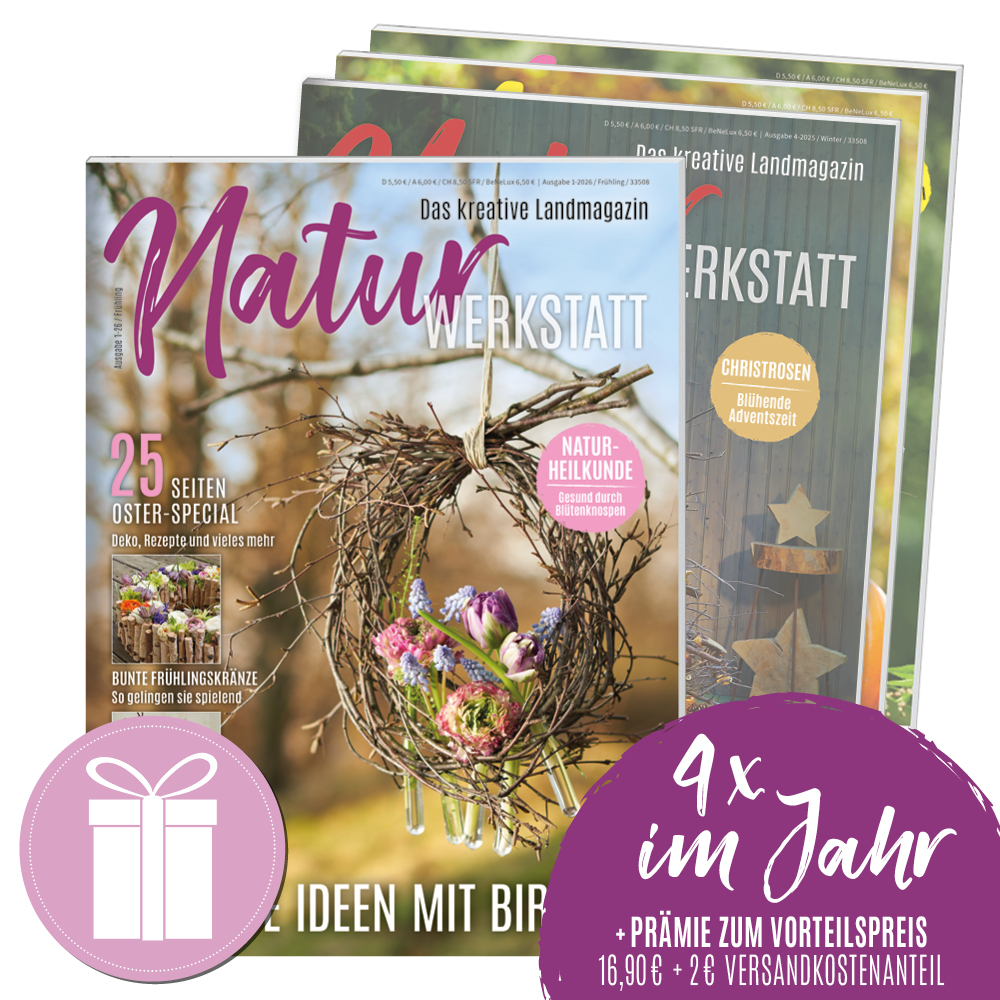 Oder macht einer lieben Person eine Freude und verschenkt NaturWERKSTATT im Abo! Einfach bei uns im Webshop bestellen und den Geschenkgutschein bequem zuhause selbst ausdrucken.
